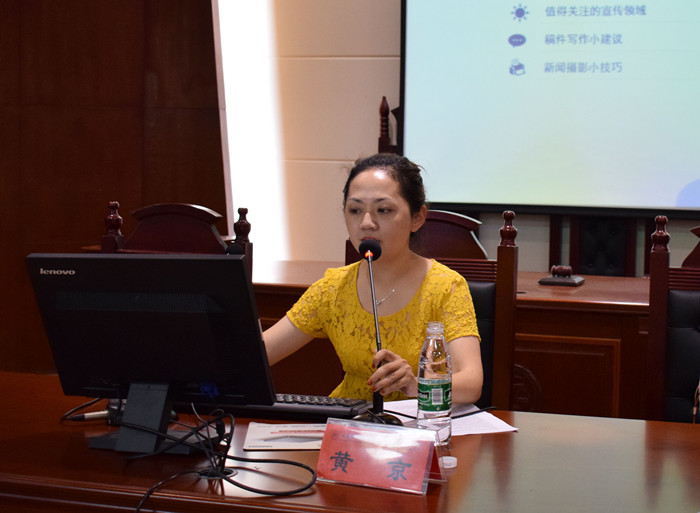 随后,三湘都市报教育新闻部主任黄京为大家进行了校园新闻写作与摄影培训。黄京在新闻采写一线奋战多年,有丰富的新闻写作经验,获得过全国都市报(晚报)好新闻一等奖等多个新闻报道奖项。会上,黄京结合实例为大家介绍了值得挖掘的新闻亮点和宣传领域,传授了关于新闻稿件写作和新闻摄影的技巧。黄京还与同学们进行了热烈的互动,建立起了便于日后交流的微信群,并就新闻材料的整理和选择、故事细节的挖掘以及新闻写作的规范化等问题为在座师生答疑解惑。培训结束后,师生们直说干货满满,对校园新闻工作有了更全面、更深入的认识。