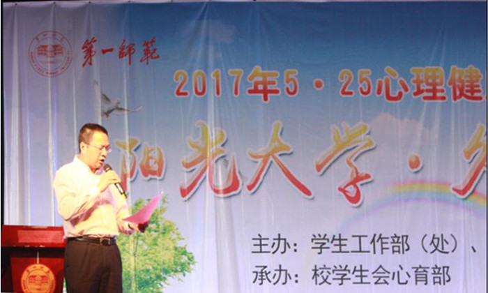 刘宇在致辞中对我校一年来的心理健康工作给予了充分肯定,同时,向全校学生发出“共同关注心理健康、多学习心理健康知识、快乐成长成才,做幸福一师人”倡议,并预祝晚会圆满成功。