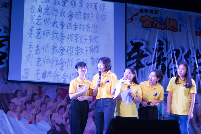 随后,社团成员表演由他们自编自导的舞台剧《梦回支教,青春里》。剧本演绎了一名大学生穿越到2014年守望湘西坐苦坝支教点,从一开始对支教生活的抱怨到最后被山区的孩子们所感动的种种经历,让同学们如临其境一起回到那年支教的夏天,回到难忘的支教时光,体会到“也许老师们能给孩子带去的仅仅只是打开外面世界的一角,但他们反馈给我们的确是内心永恒的一束阳光”。