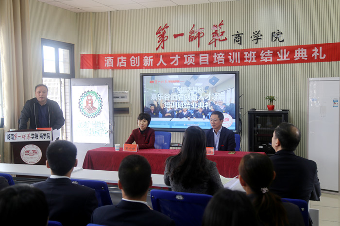 4月28日上午,我校与广州勤天集团合作的酒店创新人才项目培训班圆满结业。我校校长童小娇、商学院院长佘国强、广州勤天集团董事长王硕朋、副总裁叶意明、酒店总经理张子明出席结业典礼。