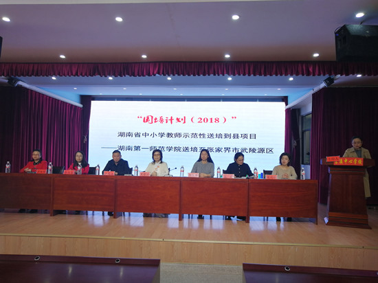 为满足张家界武陵源区、桑植县、慈利县3个县区的中小学教师培训需求,按照省教育厅的统一部署,我校国培计划项目办公室连续利用周六、周日时间,于10月27、28日,11月3、4日送培至3个县区。培训对象有小学语文、小学数学、初中语文、初中数学任课教师以及初中班主任。共1100多名当地教师、教研员参加了本次培训。