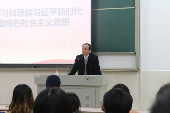 11月12日晚,校党委副书记刘志敏在鹤鸣楼南栋111教室为美术与设计学院分党校、音乐舞蹈学院分党校第21期入党积极分子培训班全体学员上了一次生动的党课。党课的主题为“深入学习和理解习近平新时代中国特色社会主义思想”。