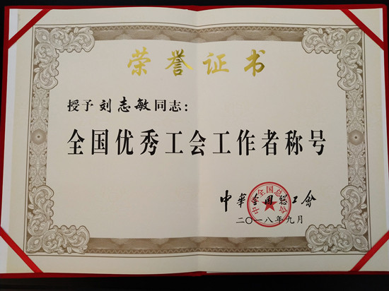 近日,中华全国总工会下发了《关于表彰全国模范职工之家、全国模范职工小家、全国优秀工会工作者和命名全国优秀工会积极分子、全国优秀工会之友的决定》,我校党委副书记、工会主席刘志敏荣获“全国优秀工会工作者”称号。
