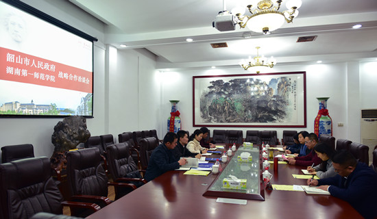 12月7日上午,中共韶山市委常委、市人民政府副市长周正等一行4人来我校洽淡战略合作事宜。我校副校长刘宇及党委行政办公室、教务处、科研处、基础教育发展部有关负责人热情接待了来访客人,并在行政办公楼一楼会议室举行了洽谈会。