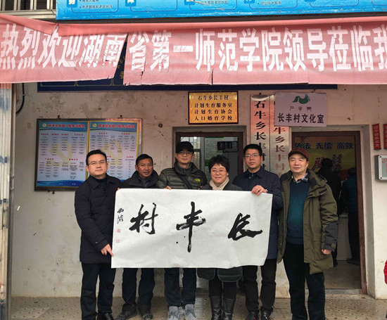 1月14日,在农历新年即将来临之际,校纪委书记李昱率美术与设计学院院长范迎春、党总支书记苏美华及书法专业师生一行14人来到我校驻点扶贫村——双峰县长丰村,为当地群众现场挥毫泼墨送春联、送新春祝福。校党委委员、宣传部长、长丰村党支部第一书记赵小群,扶贫工作队员鲁云生、李豪杰参加活动。