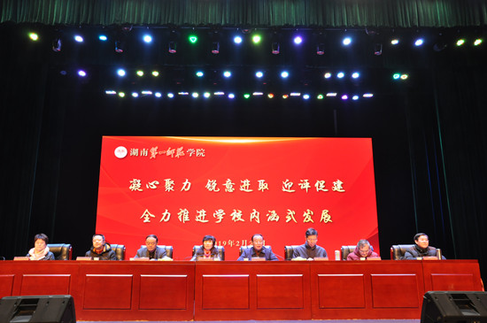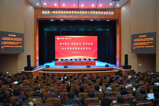2月23日,新学期开学第一天,学校在东方红校区田汉剧场召开了迎接教育部本科教学工作审核评估动员大会。校长童小娇作动员报告,副校长江正云就我校迎接教育部本科教学工作审核评估工作作部署,校党委副书记刘志敏主持会议并作总结发言。全体在家校领导、全校教职工参加会议。