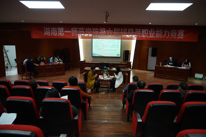 为提升辅导员职业素养和专业技术水平,我校于2017年3月4日和3月11日分别举办了第六届辅导员职业能力大赛初赛和决赛。本次大赛学校高度重视,校党委书记彭小奇、校长童小娇、副校长刘宇亲临比赛现场,与辅导员亲切交流,为辅导员鼓舞志气。大赛在校领导的关心指导下,在学生工作部(处)的精心组织下,在各学院党总支的大力支持和全体辅导员老师的积极参与下,取得了圆满成功。