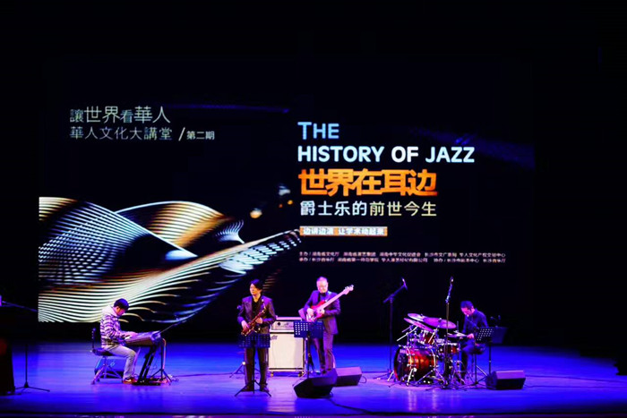 “华人文化大讲堂”旨在打造湖南乃至全国深具影响力的文化高端讲坛。以弘扬优秀文化,传播高尚价值为己任,邀请国内外卓有成就的一流华人艺术家,采取边讲边演的方式,让文化大家引领大家走进文化艺术殿堂。本场讲座是华人大讲堂第二期,讲座主题是:世界在耳边——爵士乐的前世今生。