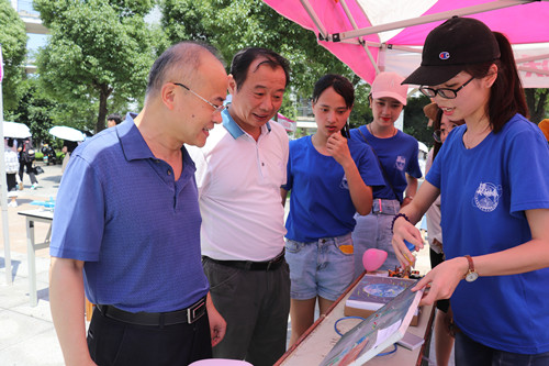 6月3日,我校教育科学学院第五届“大千世界”科技节在润之广场启动。校党委书记彭小奇、校长童小娇、党委副书记刘志敏、教务处处长蒋蓉、教科院党政负责人和部分教师、全体辅导员到场参观指导。