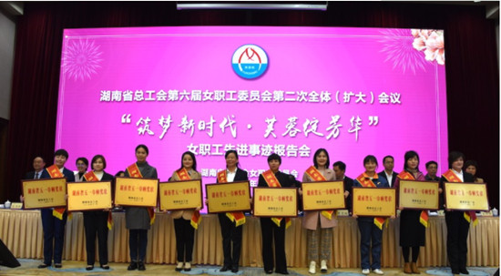 会议对第八轮女职工“芙蓉杯”竞赛先进单位、湖南省五一巾帼奖状(湖南省工人先锋号)、湖南省芙蓉标兵岗、湖南省芙蓉百岗明星、湖南省工会女职工培训示范学校进行了表彰。我校二附小语文组在此轮比赛中荣获“湖南省五一巾帼奖状”,同时被授予“湖南省工人先锋号”称号;我校多个学科联合申报的小学教育专业团队荣获“湖南省芙蓉百岗明星”称号。