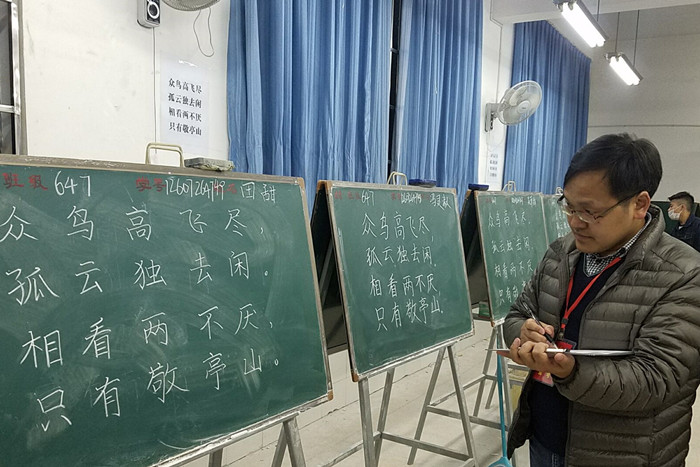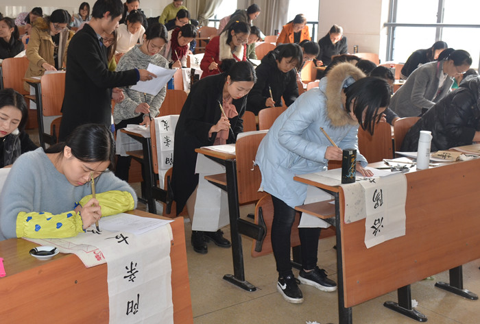 本次考核的对象为2014级六年制本科师范生,共1454人。考核内容包括粉笔字、钢笔字、毛笔字、简笔画、识谱视唱、微型课和队列口令等项目。每个考核科目按百分制计分,根据成绩分为“优秀”“良好” “合格”“不合格”四个等级。通过全部考核科目的学生将获得学校颁发的师范生教师职业技能考核等级证书。