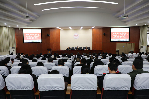 校党委书记彭小奇就我校主题教育活动作总结汇报。今年9月第二批“不忘初心、牢记使命”主题教育启动以来,在省委第八巡回指导组精心指导下,校党委对标中央、省委要求,坚持把开展好“不忘初心、牢记使命”主题教育作为重大政治任务,紧扣学习贯彻习近平新时代中国特色社会主义思想主线,牢牢把握主题教育总要求和目标任务,聚焦“不忘初心、牢记使命”主题,充分发挥学校光荣的革命传统和教育传统的优势,按照“红色教育固初心”“立德树人担使命”“对标检视找差距”“立行立改抓实效”总体思路,一体推进四项重点措施并贯穿主题教育始终,特色鲜明,成效显著。一是聚焦主题主线,将学习教育、调查研究、检视问题、整改落实贯穿始终、一体推进。二是勇于担当作为,凝聚了建设一流师范院校、办好人民满意教育的强大动力。三是深化主题教育成果,以自我革命精神加强党的建设,推进主题教育常态化制度化。