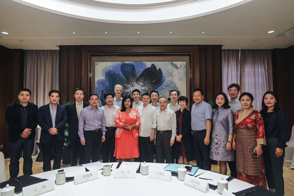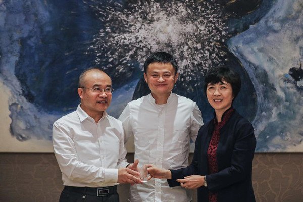 在“校长领导力圆桌论坛”开始前,彭小奇书记和童小娇校长亲切会见了马云先生,双方就教师教育改革、乡村教育人才培养和研究等作了交流探讨。马云先生感谢一师对他发起的乡村教育人才计划的支持,并为我校颁发了纪念奖杯。