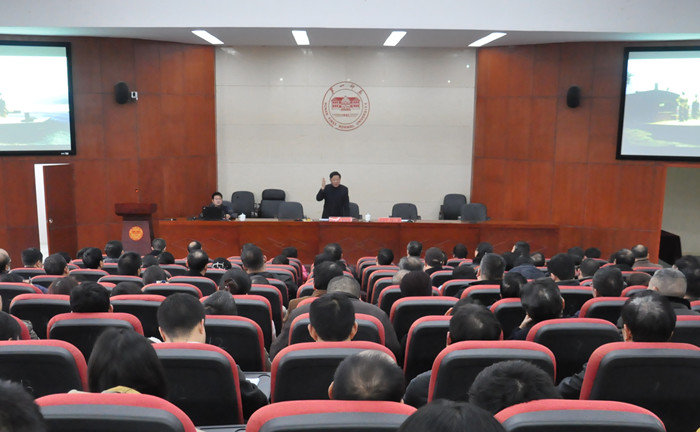 11月29日下午,我校召开党的十八届六中全会精神宣讲报告会,省委宣讲团成员、省委党史研究室主任张志初传达学习党的十八届六中全会精神。我校党委书记彭小奇主持报告会,全体校领导、全校副科级及以上干部、全体党支部书记聆听了报告。