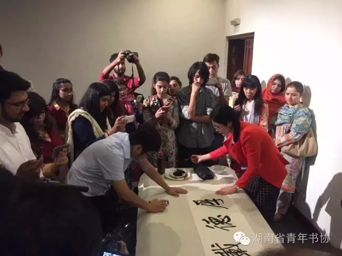 10月21日,湖南省青年书协副主席、我校书法学科带头人王佳宁博士随湖南省文化厅副厅长、湖南省书法家协会主席鄢福初一行,应邀参加由中国驻巴基斯坦大使馆、巴基斯坦新闻广播及国家遗产部主办的“庆祝中华人民共和国成立67周年中巴艺术联展”,受到中国驻巴基斯坦大使孙卫东、中国驻巴使馆文化参赞游翼的亲切接见。此次艺术联展对传播中华传统文化,促进湖南与巴基斯坦文化交流均具有积极意义。