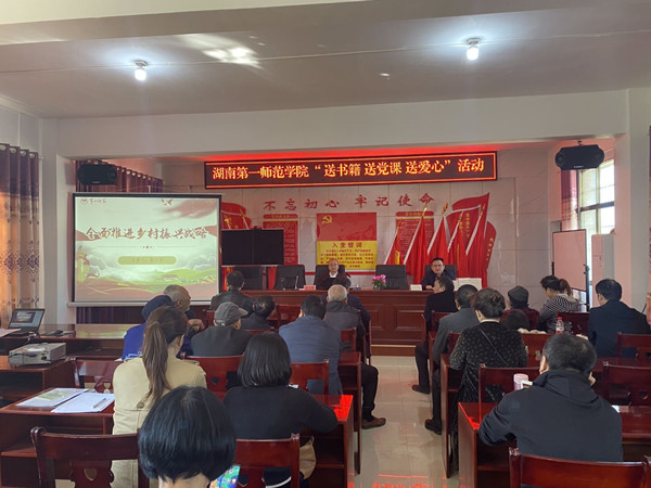 为贯彻落实习近平总书记在湖南考察期间重要讲话精神,切实提升脱贫质量,实现脱贫攻坚和乡村振兴有机结合,校党委书记彭小奇带队赴长丰村开展“三送”活动,送理论到基层、送党课到支部、送温暖到农户。校党委副书记刘志敏、校党委委员、组织部长彭晓辉,纪委办(监察专员办公室)、审计处党支部全体成员及石牛乡党委书记彭小哈等参加了活动。