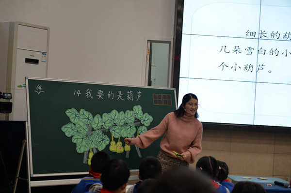 课堂上,戴娜老师执教的《司马光》,紧扣单元要素,在发现中激发学生的主动性,在导学中催生学生的思维发展,深入浅出间,带着孩子们感受文言文独特魅力。廖婷婷老师执教的《普罗米修斯》,和孩子们一起走进神话故事,在朗读、对话中品文字,想画面,感神奇,悟形象。田地老师将自己的思考融入《夏日里的成长》,让学生在精读段落中品析词句,探究写作的奥秘;在读写迁移中言语实践,习法培能。彭艳老师执教的《卖火柴的小女孩》,在朗读中描绘画面,与小女孩一起划燃“幸福”的火柴,于分享中品味童话奇妙的想象。杨慧老师执教的是《我要的是葫芦》,老师的一颦一笑、一言一行,一笔一画、一举一动尽显语文老师专业素养,精妙的教学设计于无痕中彰显了杨老师的教育智慧,学生如沐春风,课堂情趣盎然。