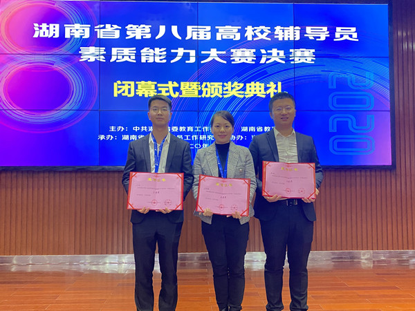 湖南省第八届高校辅导员素质能力大赛由省委教育工委、省教育厅主办,省高校辅导员工作研究会承办,湖南科技大学协办。10月19日,来自全省103所完成初赛的高校共309名辅导员参加了复赛。我校外国语学院辅导员陈阳、教育科学学院辅导员邓魁、数学与计算科学学院辅导员吉先菊三位参赛辅导员刻苦备赛,努力拼搏,以本科院校组复赛团体总分第二名的好成绩晋级总决赛,三位选手获得省赛复赛个人一等奖。