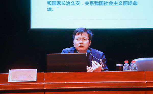 长沙学院马克思主义学院副院长蒋晓东教授以《坚持和加强党的全面领导》为题,从如何充分认识、准确把握“坚持和加强党的全面领导”的重大意义、科学内涵等内容展开授课。授课指出,加强党的全面领导是实现中华民族伟大复兴的根本保障,党是最高政治领导力量,党的领导是历史和人民的选择,全体学员要加深对中国特色社会主义制度本质属性的深刻认识,充分理解新时代坚持和加强党的全面领导的实践必然性。