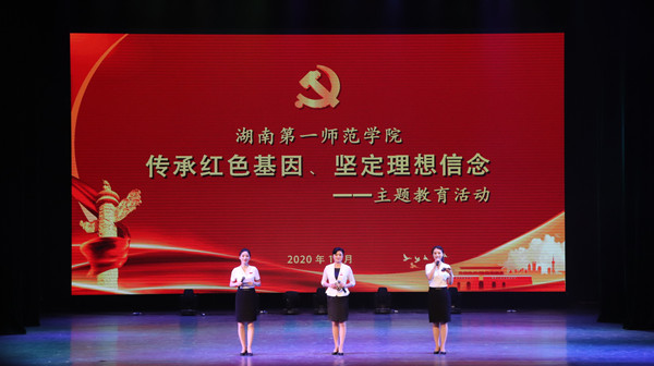 活动现场,由师生自编自导自演、主题突出、内涵丰富、形式多样的节目陆续登场。城南书院西藏班同学带来的舞蹈《路》,讲述了一个关于3800公里,50个小时的车程,30个西藏少年从雪域高原到热血潇湘的奋斗故事,歌颂了信仰和坚持的力量;文学与新闻传播学院情景朗诵《相信》,回忆了抗疫过程中幕幕令人动容的场景,致敬非常时期奋战在疫情防控一线最可爱的人,讴歌了生命至上、举国同心、舍生忘死、尊重科学、命运与共的抗疫精神;音乐舞蹈学院舞台剧《村里来了个师范生》讲述了扶贫支教老师康瑜师范毕业后在贫困地区学校支教的故事。康瑜老师用学识、爱心和智慧赢得了孩子们的信任、尊重和爱戴,并决定留下将一生奉献给贫困地区教育事业,令现场动容不已;数学与计算科学学院诗朗诵《北方》,以1938年战争阴云笼罩下的北国大地为时代背景,歌颂了人民的强大生命力和强大斗争力;音乐舞蹈学院歌曲《不忘初心》,让现场观众重温了红军战士用生命和热血铸就的光荣历史,重温了革命先辈用理想和信念丈量的伟大征程。