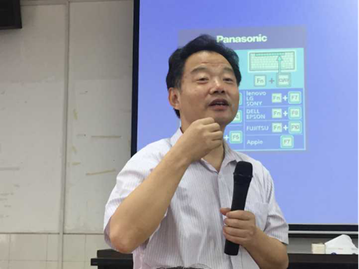 “你最喜欢的一部电影是什么?为什么?” “让我们来玩个小游戏---手指做个人字给我看。”7月14日上午,全国第二届教师教育课程资源专家委员会教师,教育工作委员会委员,“国培计划”专家库首批专家,华中师范大学吴伦敦教授用一个贴近生活的问题和一个趣味小游戏引发了学员们对一堂优秀培训课评判标准的思考,激发了学习兴趣,拉近了与学员之间的距离。他的专题讲座《如何设计一堂优质的培训课》没有枯燥的理论,而是通过许多丰富的实例让学员们明确了一堂优质的培训课必须具有实用性、技巧性和延续性三个功能。学识渊博的吴伦敦教授风趣幽默、深入浅出的授课方式赢得了学员的阵阵掌声。