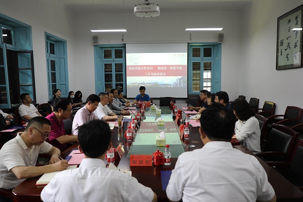 5月10日上午,省韶山管理局党委书记、局长高扬先,省韶山管理局党委委员、副局长汤光强、付维华率代表团来我校城南校区开展党史学习教育,并洽谈双方合作事宜。校长童小娇,党委委员、副校长彭晓辉,党委委员、宣传部部长赵小群出席了座谈会。座谈会由彭晓辉主持。