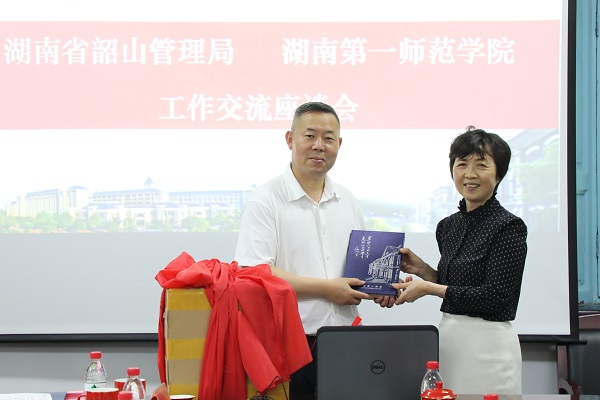 省韶山管理局办公室、宣传处、接待处、人事处、机关党委、韶山毛泽东同志纪念馆、韶山宾馆、韶山毛泽东图书馆、韶山毛泽东广场管理处、省韶山管理局园林环卫管理处、省韶山管理局照相馆等部门负责人,以及我校文物管理处、党委行政办负责人参加了座谈会。