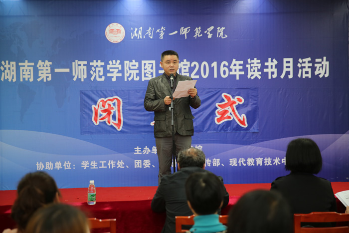 最后,图书馆副馆长袁小平宣传我校2016年“阅读,从图书馆出发”读书月活动圆满落幕!