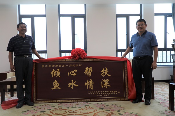 6月11日上午,我校精准扶贫帮扶村双峰县石牛乡长丰村党支部和村委员会成员专程将一块“倾心帮扶 鱼水情深”牌匾送到学校,以表达对我校精准扶贫工作的谢意。党委书记罗成翼代表学校接受了牌匾,并同长丰村村支两委成员进行亲切座谈,党委副书记李克勤,党委委员、宣传部部长赵小群和扶贫工作队成员参加会议。