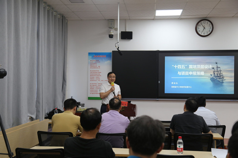 本次培训针对2021年“国培计划”项目申报实施的重点难点痛点问题,举办了两场专家讲座,旨在提升我校国培团队的项目申报能力和工作坊实施能力。16日晚,由湖南省中小学教师发展中心师德建设与师资培养科科长黄佑生,做了题为《“十四五”国培顶层设计与项目申报策略》的专题报告。17日上午,由湖南师范大学附属颐华学校校长黄丽君,做了题为《教师工作坊的组织实施与自主选学》的专题报告。两位专家根据不同的培训主题和学员需求,指导我校国培工作者科学设计培训方案,组建一流的专家团队,围绕培训主题,从专业理念、专业知识、专业能力三个维度,宏观、中观、微观三个层面,精心构建了培训内容体系和课程,精准实施培训项目,并针对大家提出的疑惑进行了交流探讨。大家普遍反映这种形式的培训太实用了,对今年即将进行的项目申报和实施工作具有重要指导意义。