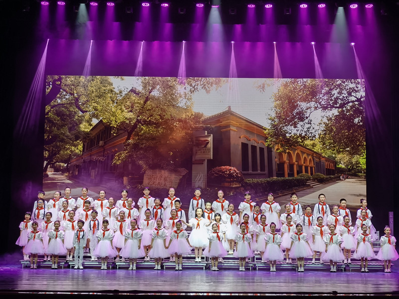 晚会分为三个篇章。第一篇章《建党先声·一师荣光》,讲述了上世纪20年代,面对山河破碎的旧中国,以毛泽东、蔡和森等为代表的一师人,用热血和生命书写了“问苍茫大地,谁主沉浮”的责任和担当。第一师范是中国共产主义运动和新民主主义革命的策源地之一,从妙高峰的第一师范到嘉兴南湖的红船,再到庄严的天安门城楼,一师人始终坚贞不渝地高举信仰与理想的旗帜,为民族独立、人民解放、国家富强筚路蓝缕,砥砺前行。