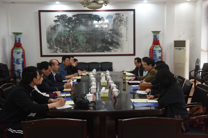 4月26日下午,山东菏泽学院副校长刘兴坦一行8人来我校考察交流。我校副校长江正云及宣传部、文物管理处、教务处、图书馆、美术与设计学院有关负责人热情接待了来访客人,并在东方红校区办公楼会议室举行了交流座谈会。