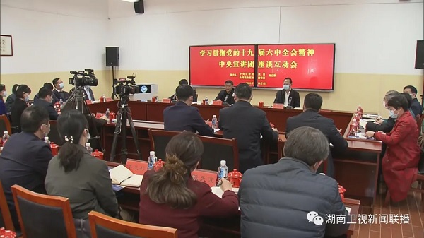 12月1日下午,学习贯彻党的十九届六中全会精神中央宣讲团走进我校宣讲,并与我校师生现场交流。中央宣讲团成员、全国政协原副秘书长舒启明作宣讲。