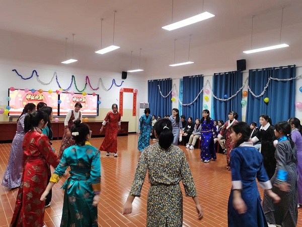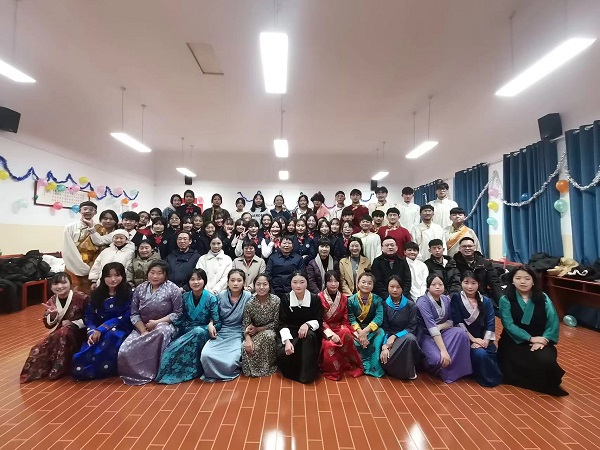 上午10时50分许,校领导们来到了城南书院丽泽苑,看望了寒假留校的西藏班师生们,与大家欢聚一堂,共迎壬寅虎年新春佳节。首先,校领导们观看了同学们精心准备的除夕联欢会文艺表演。同学们演出的形式丰富多彩,有舞蹈、合唱、朗诵、三句半等,充分展示了藏族风情,表达了中华民族一家亲、同心共筑中国梦的美好愿望。同学们个个都能走上舞台,个个都是落落大方,个个都能说一口流利的普通话,真正做到了能说会道、能写会画、能唱会跳。表演结束时,校领导们与在场师生合影留念。