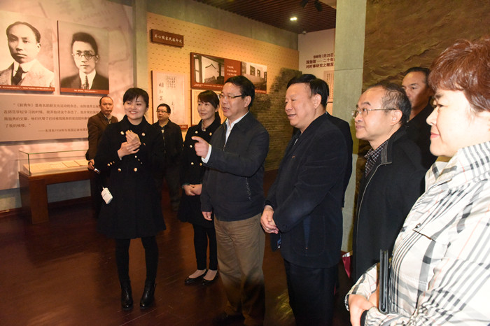 冯俊一行在讲解员的带领下,参观了毛泽东与第一师范纪念馆大礼堂、八班教室、八班寝室、水井、阅报室等景点及各陈列室,详细了解了我校的办学历史,特别是毛泽东等老一辈无产阶级革命家在这里学习工作,并立志走上职业革命家道路的经历。冯俊一边详细听取讲解员的讲解,一边不时就有关问题进行询问,对有关史料进行补充,对我校进一步充实纪念馆的史料具有重要指导作用。