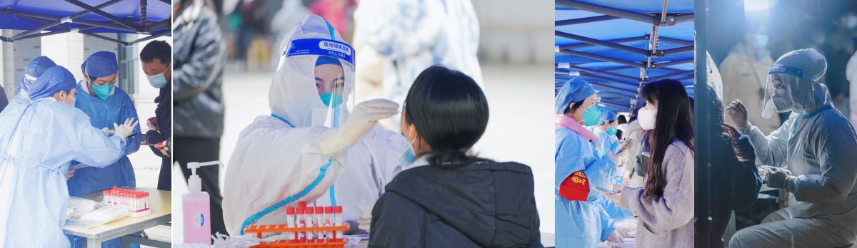 3月24日晚上21:00—24:00,我校组织全校师生进行第二轮新冠病毒核酸检测。风雨交加中的一师校园寒意袭人,由学工处联系各二级学院临时紧急征召的105名志愿者在东方红校区润之广场的35组检测台前,等候前来进行第二轮核酸检测的同学们。