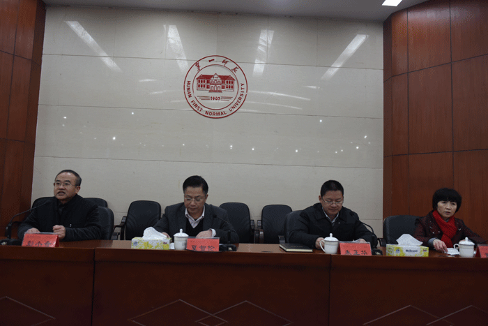 1月14日上午,湖南省委教育工委副书记夏智伦、湖南省委组织部干部四处副处长朱正华一行来我校通报了省委关于干部任免的决定。全体校领导、副处以上中层干部、各级党代表、人大代表、政协委员、学校教授代表出席会议。会议由党委书记彭小奇主持。