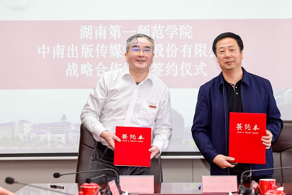 为深入贯彻习近平总书记“把红色资源利用好、把红色传统发扬好、把红色基因传承好”重要指示,助推我省红色文化产业发展,5月18日上午,我校与中南出版传媒集团股份有限公司签订战略合作协议。校长童小娇,校党委委员、副校长曹兴、周发明,湖南出版投资控股集团党委委员、中南出版传媒集团董事、总经理丁双平,中南出版传媒集团监事、湖南新华书店集团党委书记、董事长周亦翔,湖南新华书店集团党委副书记、总经理刘俊良等出席签约仪式。