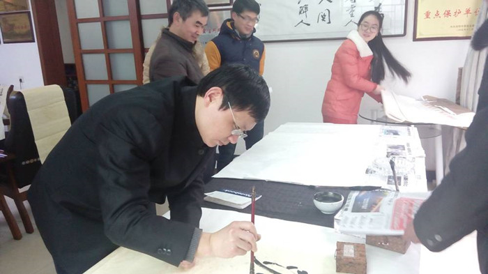 随后,基地成员与湘晖公司的楹联、书法爱好者一起,即兴进行了楹联创作与书法艺术交流。