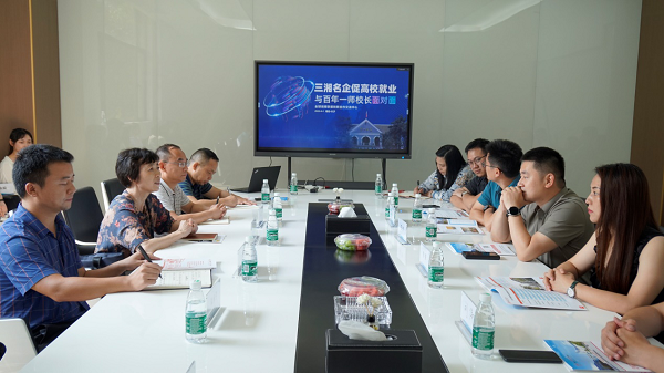 8月1日,校长童小娇率队招生就业处/创新创业学院、教务处/工程实训中心、现代教育发展学院相关负责人和教育学院、计算机学院、商学院三名学生代表赴全球湘商联盟创新合作交流中心开展访企拓岗活动。湖南省工商业联合会副主席、湖南省总商会副会长、全球湘商联盟青年委员会主任、湖南高诺产业集团有限公司董事长毛铁,湖南省民营企业服务中心主任李成强,全球湘商联盟青年委员会秘书长、湖南省工商联青年企业家商会秘书长、湖南大地同年生物科技有限公司总裁李翼等热情接待了童小娇一行。
