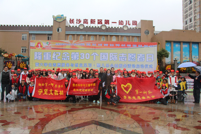 2015年12月5日是第30个国际志愿者日。为进一步传承雷锋精神,践行志愿服务行动,给在校大学生提供更多社会实践与创业见习活动平台,我校大学生志愿服务与创业见习进社区活动在长沙市高新区和馨园社区隆重启动,我校团委书记任晓晴,信息科学与工程学院党总支书记王杰文、副书记罗祥云等及学生志愿者代表100余人参加了启动仪式,湖南省志愿者联合会、长沙市文明办及高新区相关领导应邀出席。