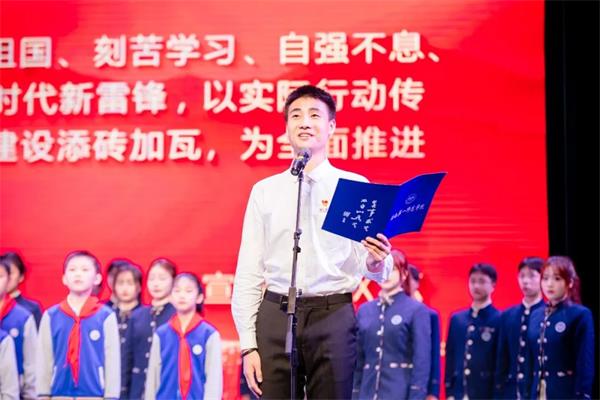 “我响应党的号召,去当新式农民,决心做个好农民。驾起拖拉机耕耘祖国大地;将来,如果祖国需要,我就去做个好工人建设祖国;将来,如果祖国需要,我就去参军做个好战士,拿起枪用生命和鲜血保卫祖国。同学们,让我们在不同的岗位上竞赛吧。老师们,请你们看我们的行动吧。”启动仪式中,湖南省大中小学雷锋精神大思政课在这里激情开讲,少年雷锋虽然稚嫩然而铿锵的声音在这里回荡。一段VCR带领同学们穿越时空,再现了雷锋在毕业典礼上的讲话及当年场景。全国教书育人楷模郭晓芳老师深情介绍雷锋:“他是出身悲苦的孤儿,却是中华第一号“暖男”;他是“好人好事”的代名词,也是多才多艺的“宝藏男孩”;他已是年届八十的耄耋之龄,青春的笑容却永驻人民的心田;他已经离开我们已过一个甲子,他的精神却超越时空、永葆青春。雷锋,以其短暂而辉煌的一生,以其坚定不移的理想信念,树起了一座“为人民服务”不朽的思想道德丰碑;雷锋精神作为时代的符号,成为中国共产党人精神谱系的伟大精神,成为社会主义核心价值观的生动体现。”“如果你是一滴水,你是否滋润了一寸土地?……如果你是一颗最小的螺丝钉,你是否永远坚守在你生活的岗位上?”1958年6月7日的雷锋日记有这样一段发人深省的灵魂“七问”,郭老师就此与同学们进行了精彩互动。