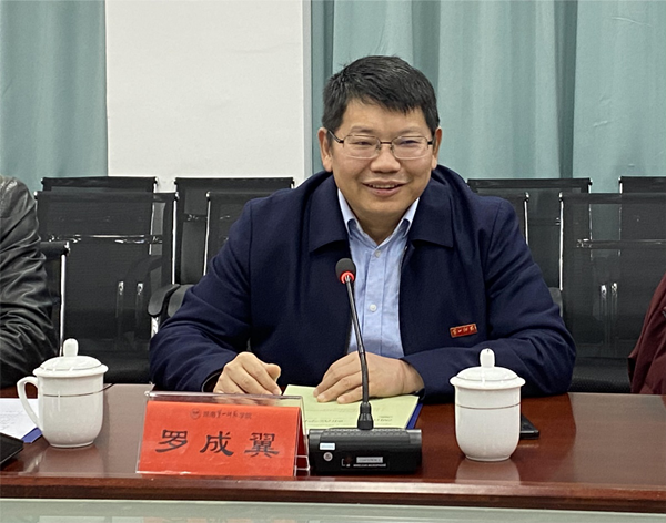 交流会上,罗成翼向袁志成一行来校考察表示欢迎,并向来宾介绍了学校在第二次党代会以来的发展理念、发展方略以及改革举措。罗成翼说,学校第二次党代会确立了“一四”战略,围绕“两坚持、两拓展”发展思路,快速落实、系统推进办学新理念,紧密对接“强师计划”和“强省会战略”。罗成翼指出,学校拓宽办学有两个方向:一是师范教育要提质,做优做强品牌;二是非师范专业在人才培养上要大力拓宽服务面,要面向数字长沙、智造长沙和文创长沙要市场、要机遇、要空间,明确服务重点、突出服务特色、提升服务能力。
