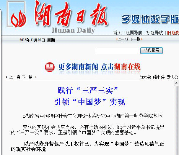 践行“三严三实” 引领“中国梦”实现——《湖南日报》刊发我校李茂平主任“三严三实”专题理论文章