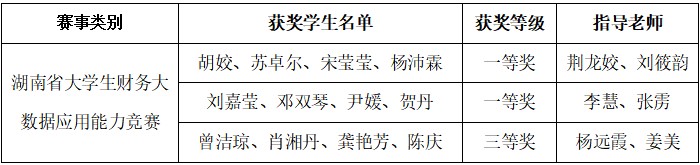 我校在湖南省大学生财务大数据应用能力竞赛中荣获佳绩