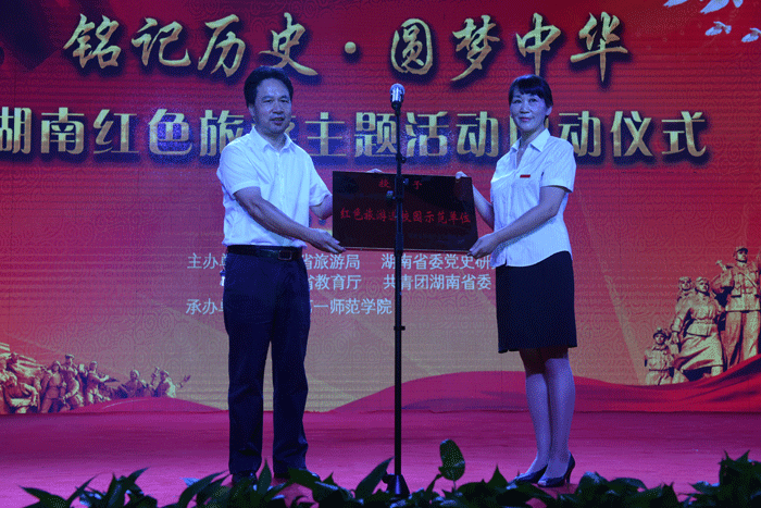 9月18日上午,“铭记历史·圆梦中华”湖南红色旅游主题活动启动仪式在一代伟人毛泽东主席青年时期求学励志的我校城南书院校区隆重举行。湖南省委副书记孙金龙出席并宣布活动正式启动,全国红色旅游工作协调小组办公室常务副主任罗迪辉出席并讲话。启动仪式上,湖南省旅游局、湖南省委党史研究室、湖南省教育厅、共青团湖南省委联合向全省发出倡议,共同推进红色旅游进校园、进社区、进景区活动。来自旅游、党史、教育、共青团等部门和高校、红色旅游景区、旅行社、基层社区代表以及我校师生代表共700余人参加了启动仪式。启动仪式由省旅游局党组书记、局长陈献春主持。