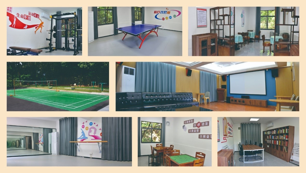 据了解,学校“教职工之家”及“退休教职工活动中心”使用面积1600多平方米,绿树环绕、空气清新,设施完备、功能齐全,集健身、娱乐、学习、休闲于一体,设有健身室、形体室、乒乓球室、棋牌室、茶吧、阅览室、多功能厅等12间活动室以及户外羽毛球场、户外休闲健身区等。