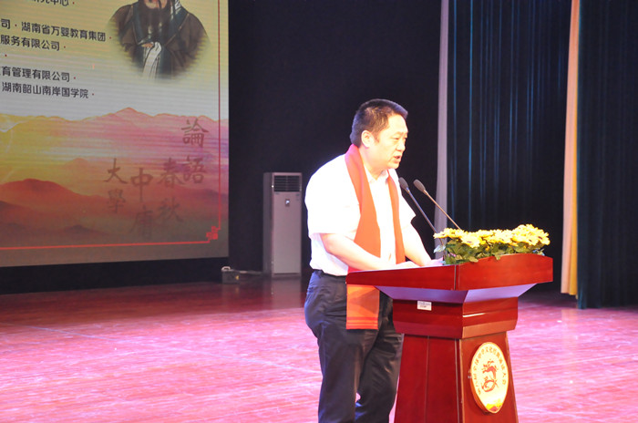 我校是主办单位之一,校党委书记彭小奇、校长肖湘愚、副校长刘鸿翔作为主礼嘉宾出席了开幕式。校长肖湘愚代表学校对来宾表示热烈的欢迎,他指出,全球中华文化经典诵读大会在宣传弘扬中华优秀传统文化、不断增强中华民族凝聚力等方面发挥了重要作用,今天与历史悠久、人文底蕴和国学传统深厚的一师融合在一起,一定能将中华优秀传统文化进一步发扬光大,此次大会也必将成为又一场全球华人的文化盛会。