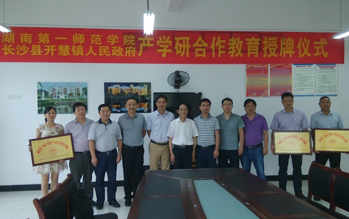7月1日,教务处处长佘向军、副处长黄国盛和实践教学管理科科长李建亚等一行3人赴长沙县开慧镇参加我校产学研合作教育基地挂牌仪式。湖南省政协常委、原湖南省社会科学院院长、开慧村第一书记朱友志、长沙县教育局副局长陈晓、长沙县开慧镇人民政府副镇长张勇、范炼,长沙县开慧镇中心学校校长陈金胜等当地有关领导参加了授牌仪式。授牌仪式由陈晓主持。