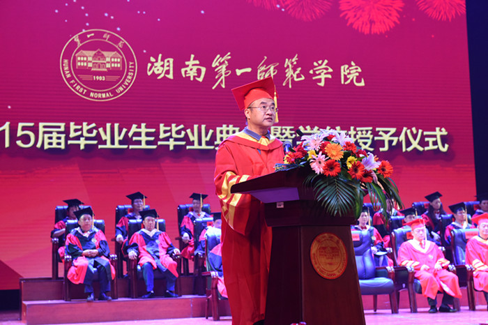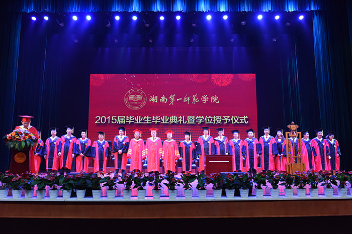 “衡山西,岳麓东,城南讲学峙其中。人可铸,金可熔,丽泽绍高风。多材自昔夸熊封。学子努力蔚为万夫雄。”在激昂雄壮的校歌声中,2015届本科毕业生毕业典礼暨学位授予仪式圆满结束。